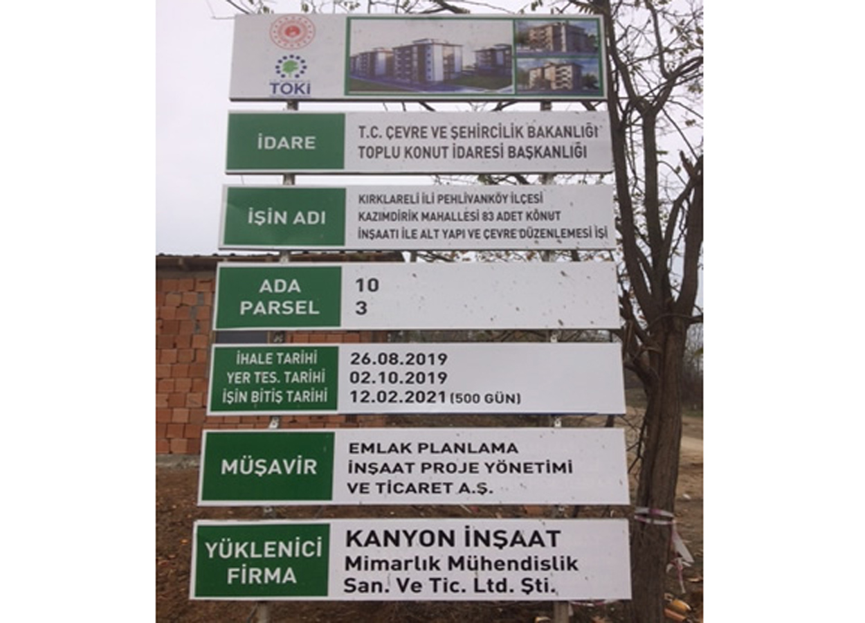 Proje Adı: Kırklareli ili, Pehlivanköy İlçesi, Kazımdirik Mahallesi 83 adet konut inşaatı ile altyapı ve çevre düzenlemesi işi
